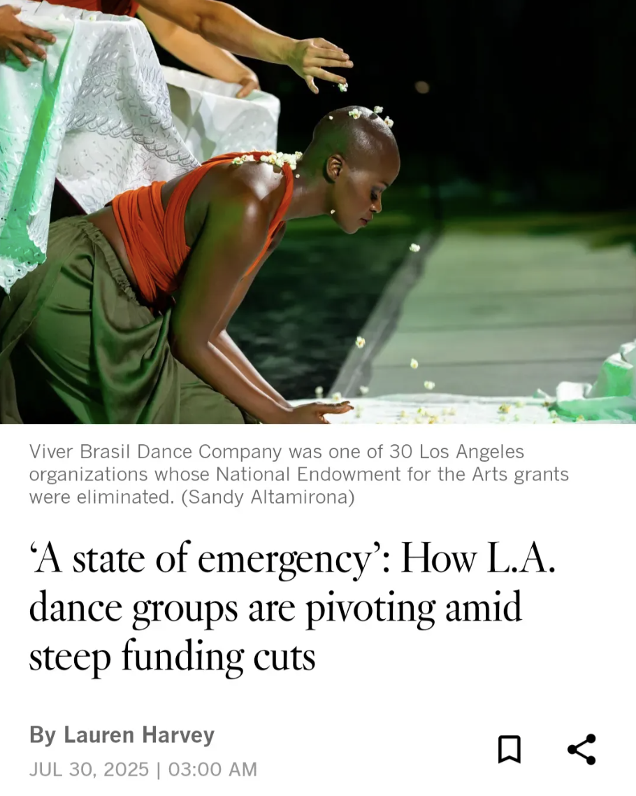 The Dance Resource Center has been dedicated to giving LA dance a voice for more than 30 years. Now more than ever, when the future of arts and culture are at a critical juncture, the DRC is giving LA dancemakers the voice and visibility they need to help LA dance thrive. We are advocating for you and creating headlines.